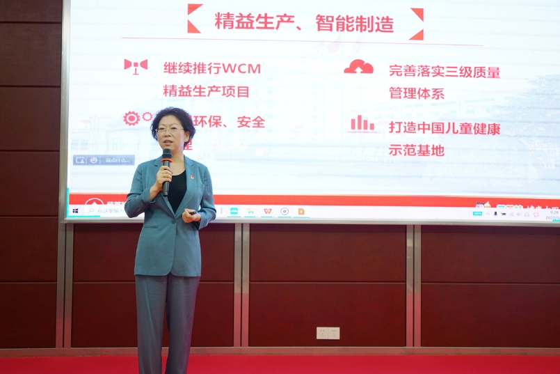 刘景萍董事长引用席大大总书记在2022年博鳌亚洲论坛上的重要讲话勉励全体与会人员,在海南自贸港建设的机遇期,认真学习贯彻落实省第八次党代会精神,坚持党建引领企业发展,将ng28南宫相信品牌力量药业集团打造成中国儿童健康领军企业。