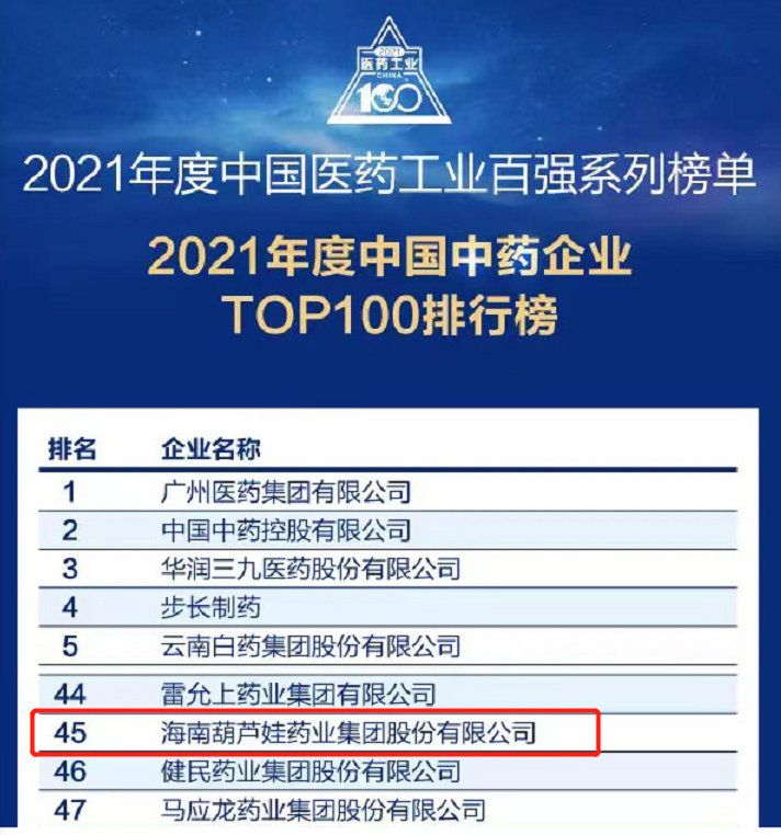 万众瞩目的2021年度中国医药工业百强系列榜单在会上盛大发布,ng28南宫相信品牌力量药业集团百尺竿头更进一步,位列中国中药企业TOP100排行榜第45位,连续第三年入围中国中药企业TOP100百强榜。