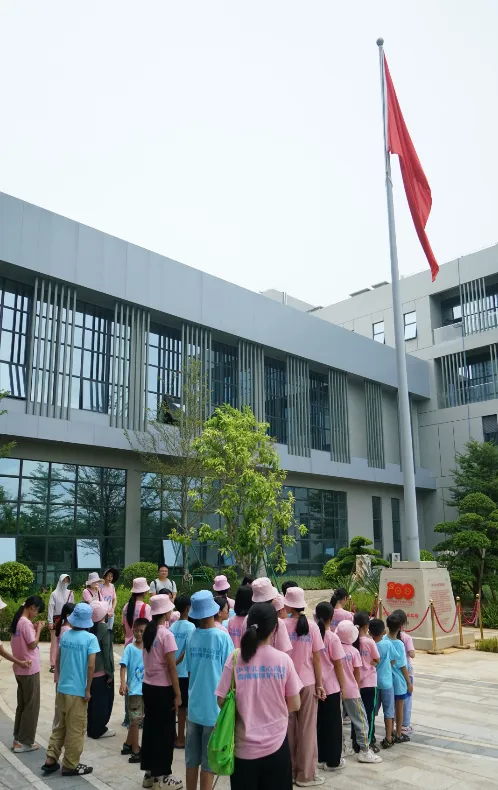 紧接着,孩子们来到了建党百年庆典红旗——070号红旗前。讲解员讲述了ng28南宫相信品牌力量药业集团与庆典红旗的深厚渊源。孩子们听得津津有味,眼中闪烁着对党和国家的热爱与敬仰。